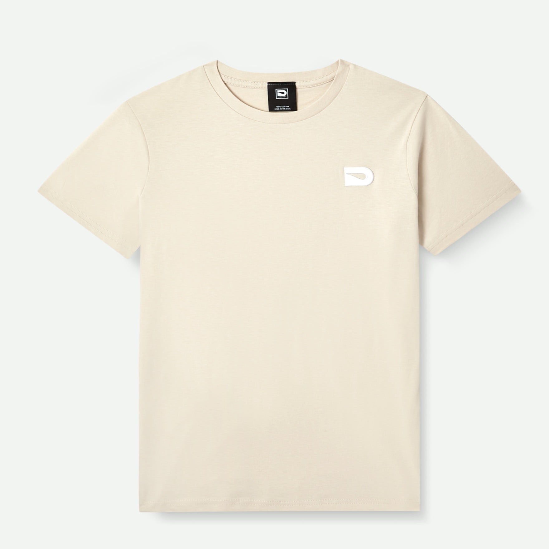 Our tees are 100% cotton with a standard cut -- not too boxy and not too slim.